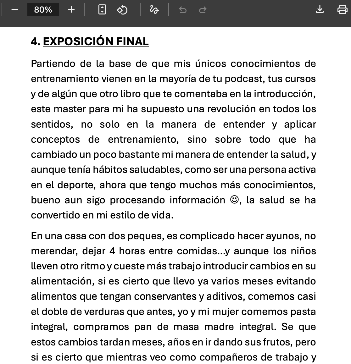 A día de hoy y tras haber finalizado el Master, no puedo estar más agradecido a Manu, por poner a disposición de todos los que nos gusta el rendimiento y el entrenamiento, este maravilloso Master en el que profesionales de todas las ramas del Entrenamiento de Resistencia han aportado sus conocimientos.